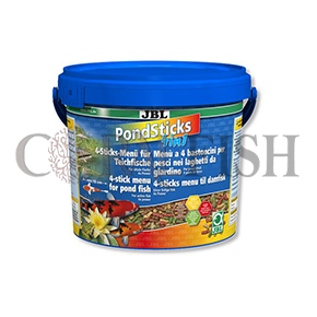 حاوی مخلوطی از ترکیبات لازم و بالانس شده ای از مناسب نیاز های ً حیوانات و گیاهانی است که دقیقا تغذیه ای همه گونه های ماهی های برکه باغی در ماه های گرم سال می باشد. بالا بودن میزان کیفی و کمی فیبر گیاهی و ویتامبن های حیاتی و لازم باعث افزایش سلامتی سیستم گوارشی ماهی ها شده و مقاومت در برابر بیماری را در آنها بالا می برد. JBL PondSticks باعث تیره شدن آب نمی شود و بسار سبک و شناور بر روی آب بوده و شما را قادر می سازد که میزان خورده شدن غذا توسط ماهی ها را کنترل نمایید.