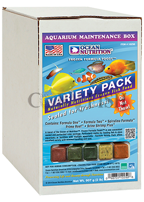مجموعه ای از غذای اقیانوسی ™ Frozen Formula Foods ™ در یک بسته بندی قابل استفاده مجدد. شامل فرمول 1، فرمول دوم، نخست ریف، فرمول فرشته، میگو پیاز، فرمول اسپیرولینا، و فرمول خاص VHP (پروتئین بسیار بالا). به خصوص برای تغذیه ماهی در آکواریوم های فروشگاه و یا امکانات با آکواریوم های چندگانه مفید است. Formula Variety Pack انواع مختلفی را با حداقل دستکاری و هزینه ارائه می دهد.