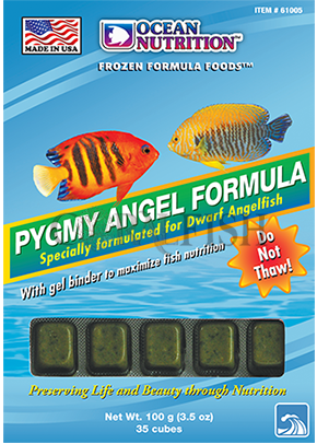 یک رژیم همه چیز که به ویژه برای Angelfish کوتوله ساخته شده است. شامل مواد مخدر، سبزیجات تازه، پلانکتون، اسفنج و انواع مختلف جلبک دریایی رشته ای است